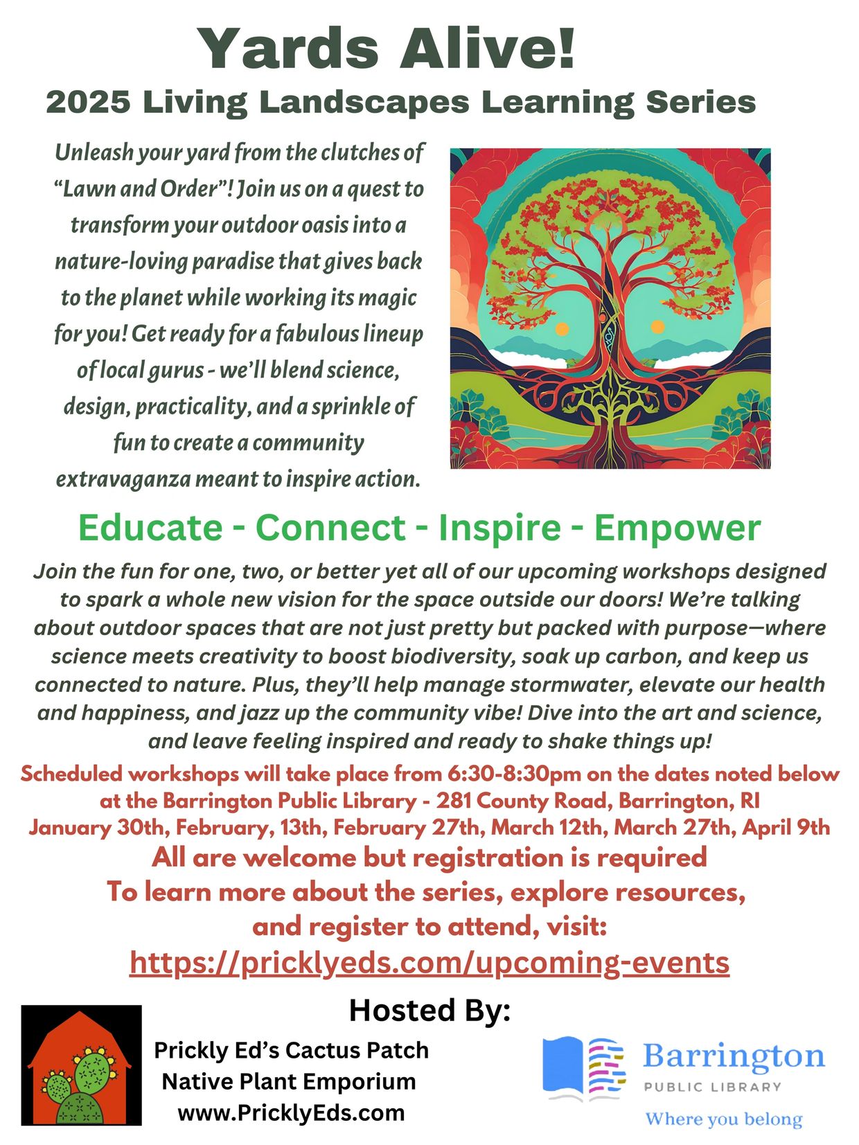 Join Cindy and Ed Moura, your wildscaping neighbors and the proprietors of Pricky Ed’s Cactus Patch, as they dig in on the nitty gritty behind infusing life and vitality into area landscapes. This session will blend presentation and Information with lots of discussion, for a lively evening that sends you off into the 2025 garden season feeling confident and inspired. We’ll touch on lots of tricks of the trade, tools of the trade, myths to be mindful of and pitfalls to watch out for.